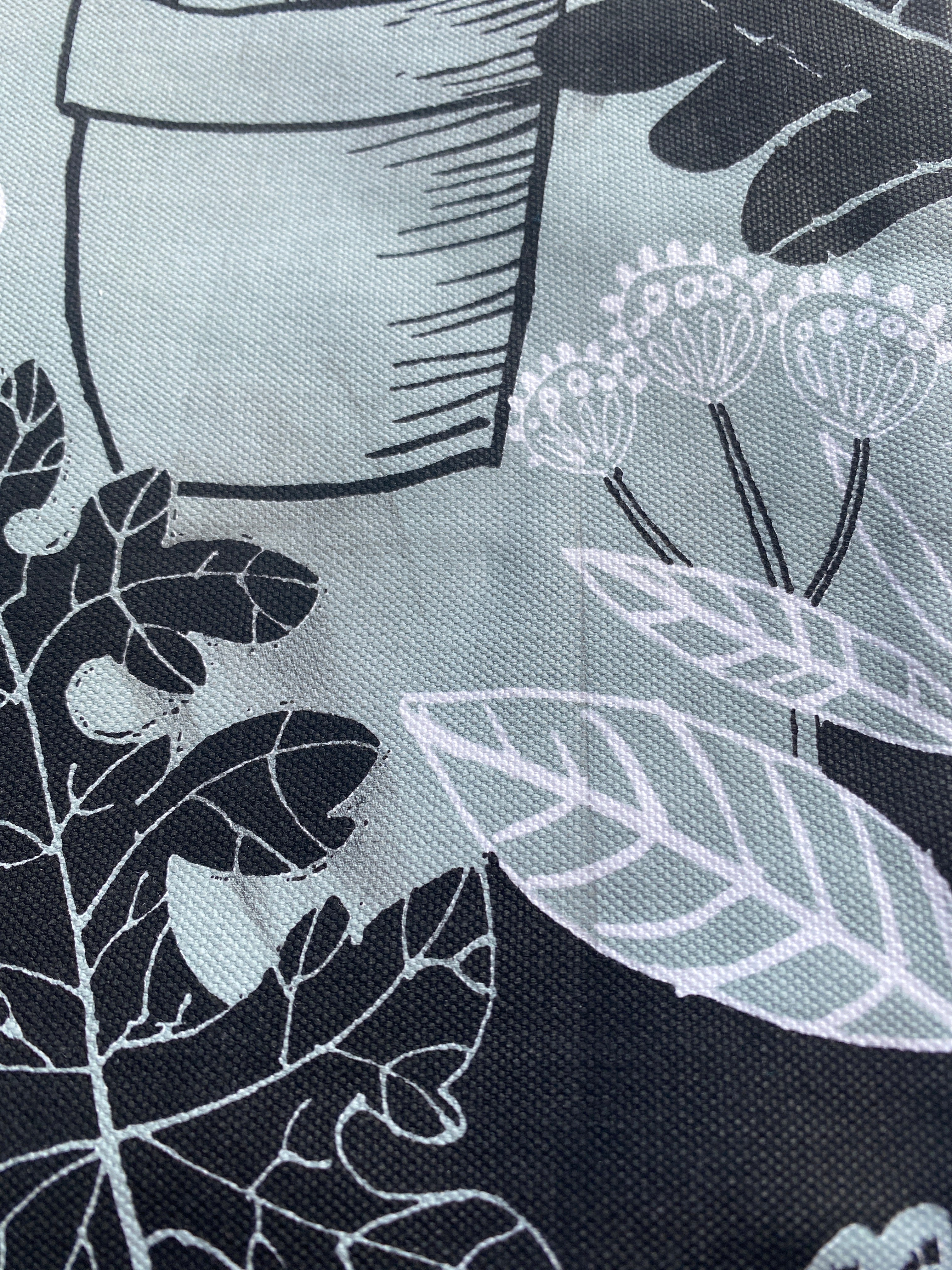Cotton canvas cushion with cats enjoying tea in the garden. This one has some marks incurred in the printing process (see detail photo). Comes complete with feather pad.